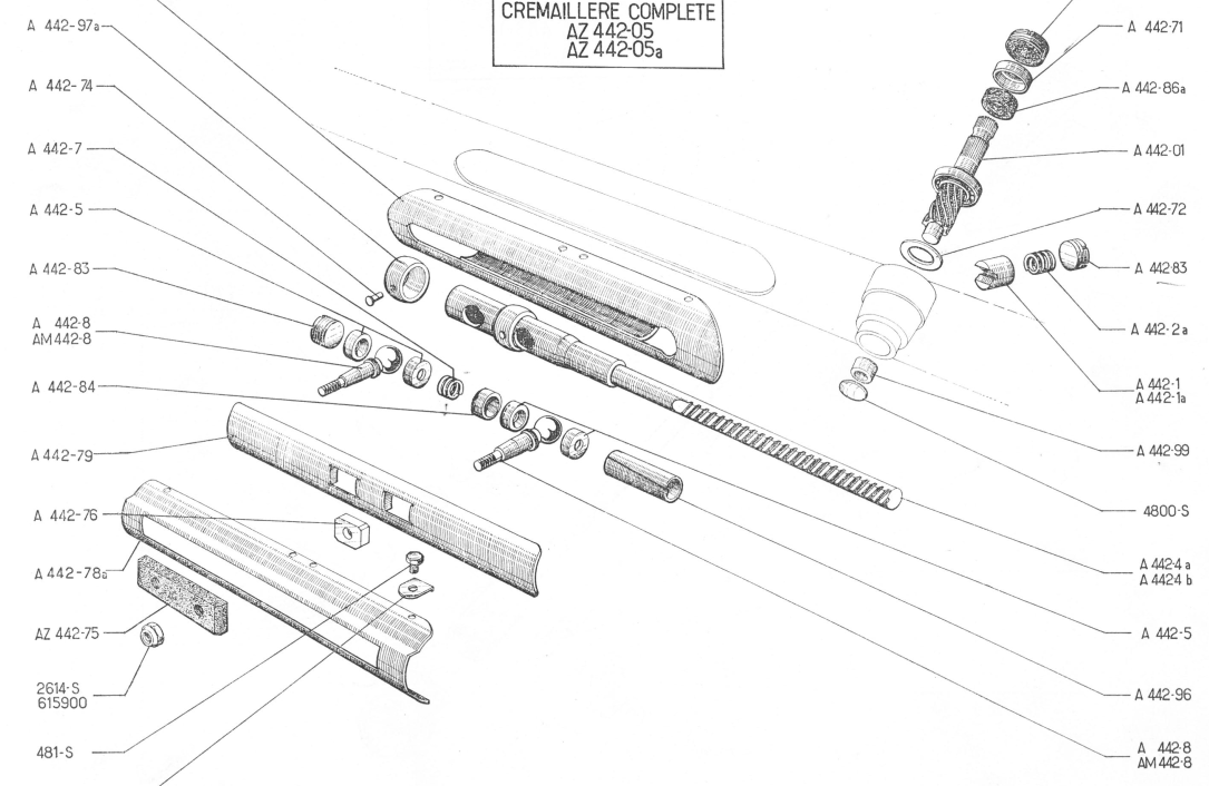 J'ai ainsi pu constater qu'il n'y avait pas de traces d'usure sur ces pièces, je les ai donc généreusement graissées, et remontées.. J'ai quand même une interrogation : les alésages des extrémités des barres de direction A 443-97d s'introduisent dans la queue conique des rotules A 442-8, mais ne vont pas jusqu'à la base des dés A 442-76, puisqu'on peut serrer entre la plaquette antibruit AZ 442-75 ? Il semble que cette plaquette soit apparue en octobre 1964...