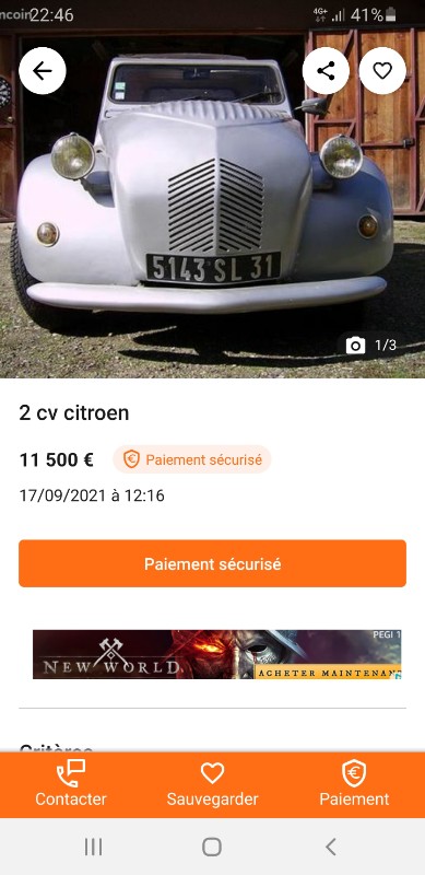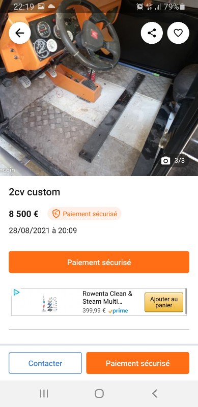 ca fait cher les ailes en polyester pour une 2CV4... et j'aime bien comme il / elle a floute la plaque arriere sur une photo, mais pas l'avant sur la suivante
