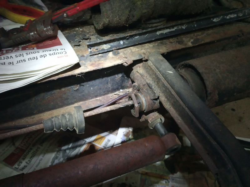 j'ai essayé d'enlever les 2 pots mais certains grands écrous n'ont rien voulu savoir, et les butoirs étaient soudés par la rouille