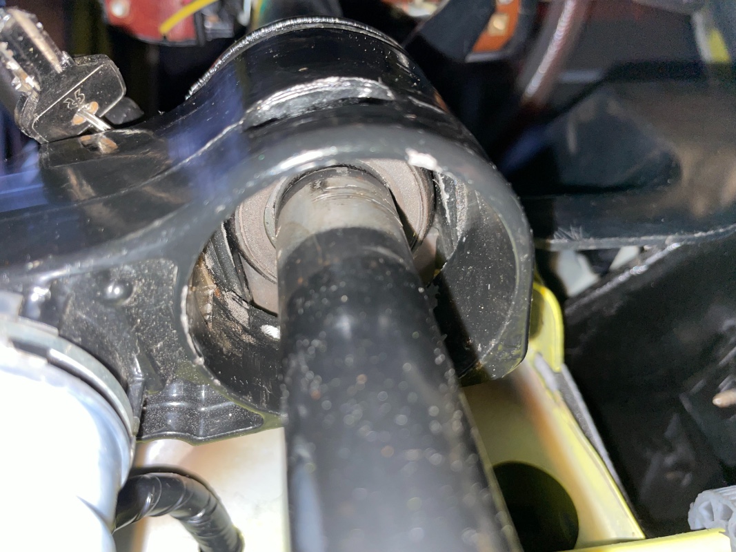 Ça explique le non blocage du volant et en roulant, je suppose que la bague, plus ou moins libre, devait se mettre de travers et c’est pourquoi en tournant le volant, je sentais le frottement des « broches » de la bague la colonne de direction.