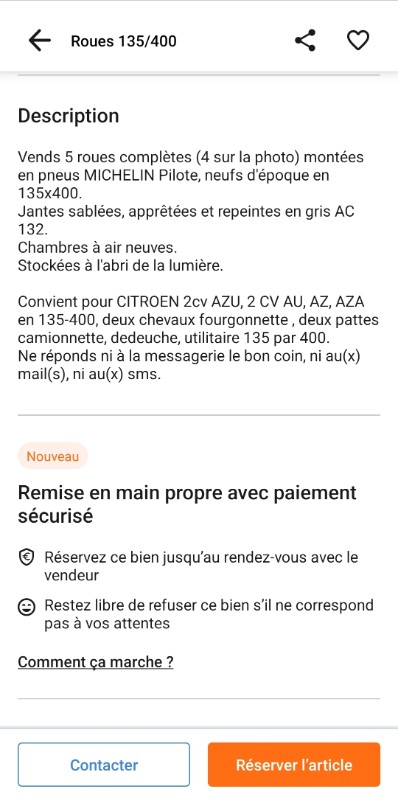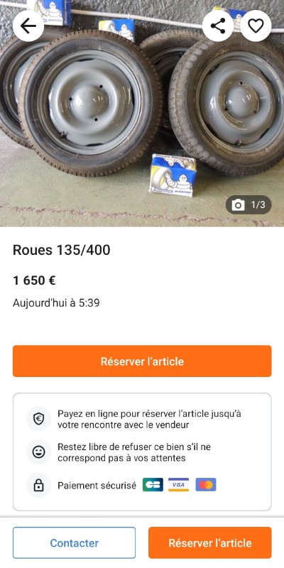 Moi je veux bien que se soit compliqué d'en trouver mais acheter à ce prix, avec des pneus, certes d'origine, mais bouillis, durs et certainement présentant un certains danger...