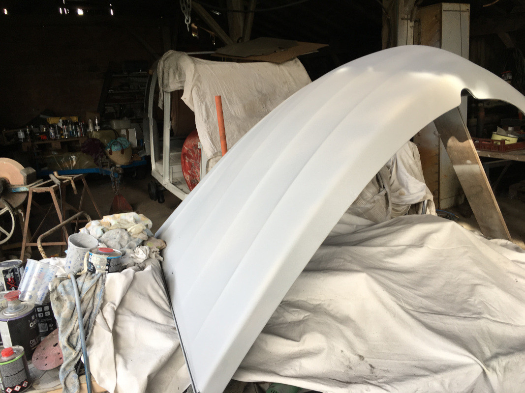 Ce matin, j'étais sur le chantier avant l'aube dans l'espoir d'avoir apprêté la plupart des éléments de la carrosserie avant 13 heures...