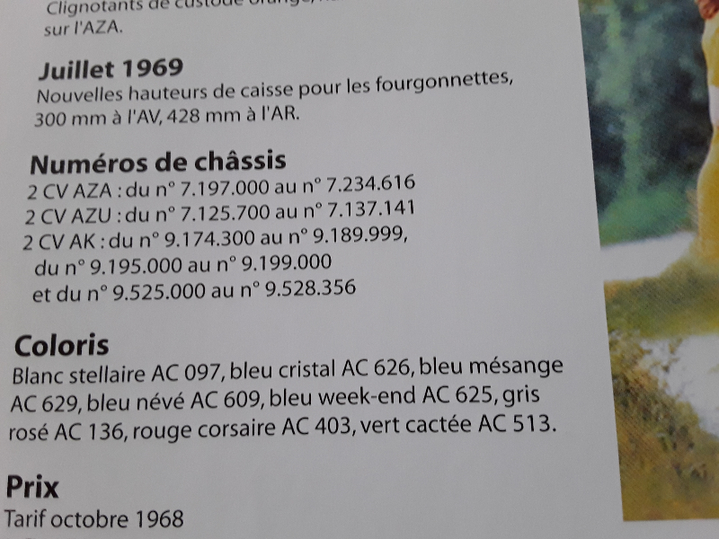 Tu as dit que sa couleur d'origine est AC 130 ? Tu as vu ça où ? Il y a une pastille sous le capot avec cette indication ? Parce que AC 130 ce n'est pas une couleur de 2 CV, en outre ce serait un gris.