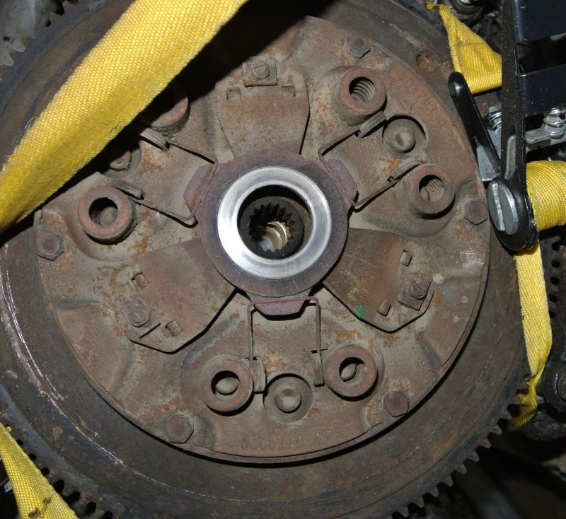 il me manquait un volant lourd pour le moteur de spare , j'en ai trouvé 1 et en le regardant de plus près et en montant mon vieil embrayage dessus , je me suis apercu qu'il y avait 3 trois trous débouchant a 120 ° :boulet2: .