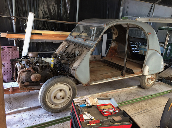 J'habite près d'Arles en Provence, j'ai trouvé sur une annonce une vieille 2CV, achetée depuis un an. C'est ma 2ème 2cv, j'ai été obligé de revendre la 1ère parce que j'avais des problèmes d'argent, un crève cœur pour moi.