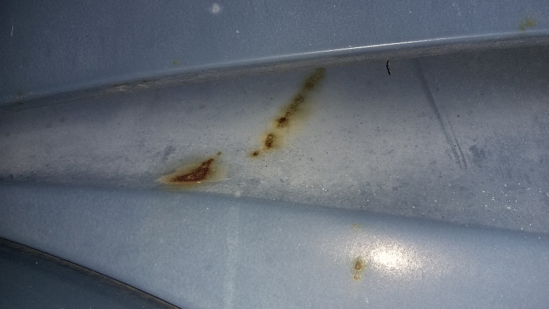 - quelques points de rouille sans gravité qui peuvent sans doute partir avec un ponçage ou un coup de disqueuse