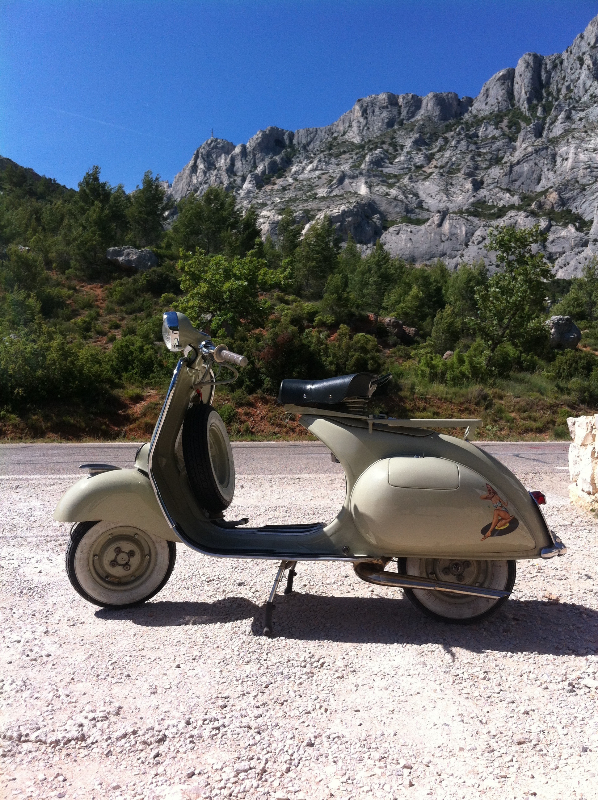 sinon je restaure des 2 roues des Vespa Acma voici ma 1958 avec laquelle j'ai fait Dunkerque Barcelone en suivant la méridienne Verte en solo