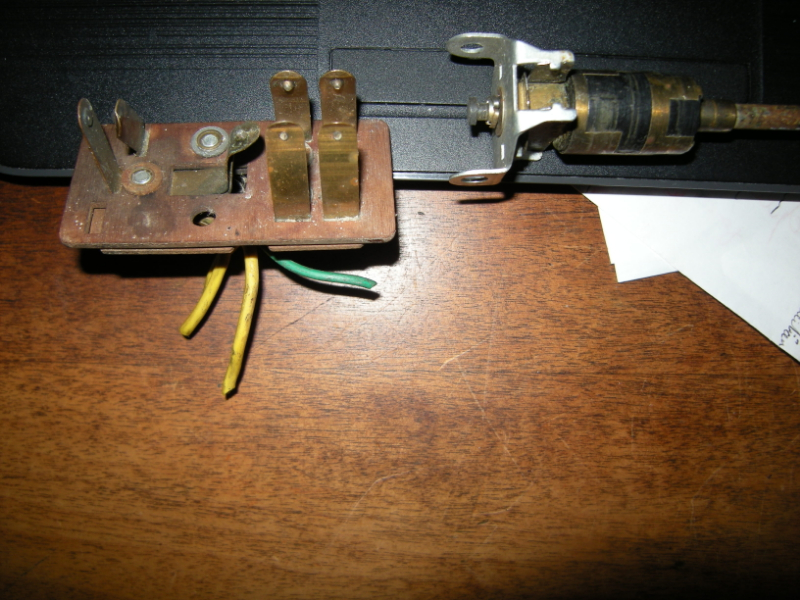 le commodo et en deux partie ,la partie en bakélite ,avec les lamelles en cuivre ,corresponde au fils qui sont brancher derrière.