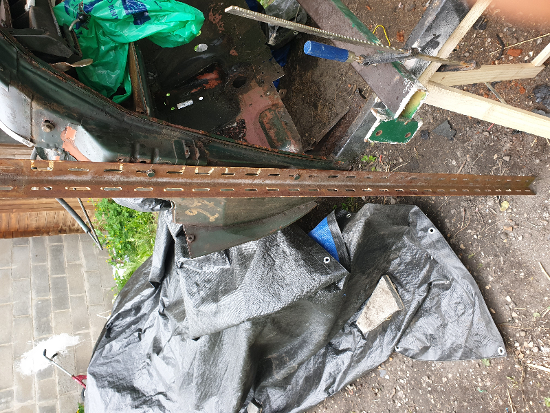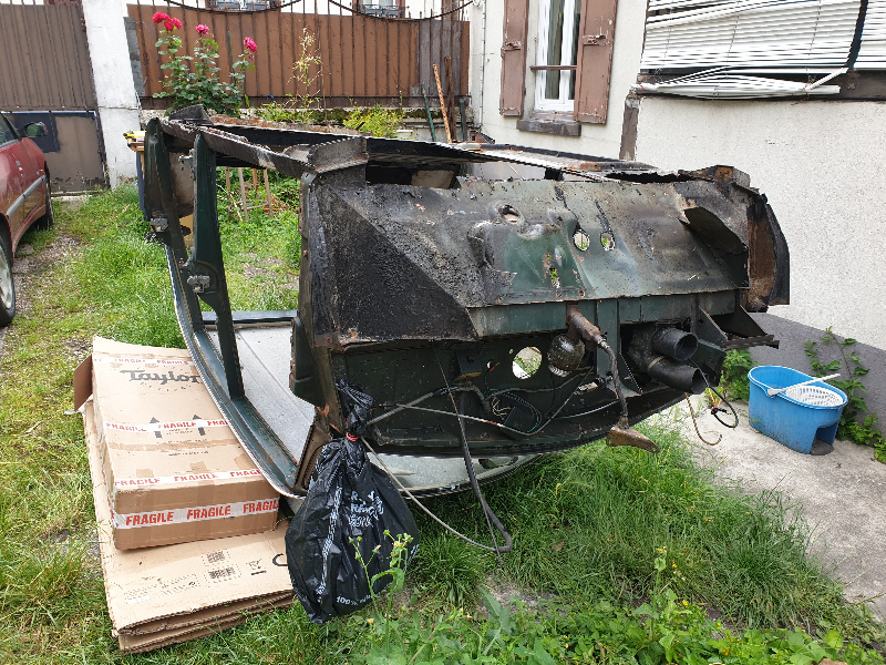 Prochaine etape: mettre la caisse à l'envers, planchers vers le haut pour changer toute la partie planchers pedales, j'avais acheté cet élément il y a une dizaine d'années.