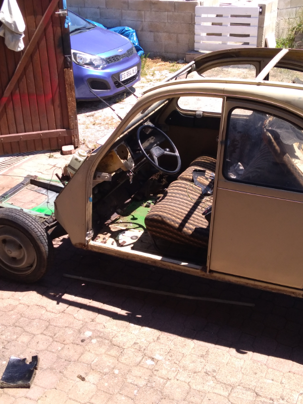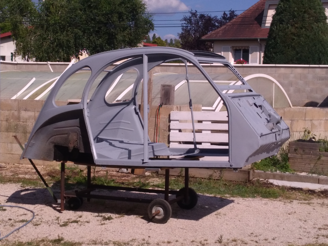 Après un long séjour de repos forcé suite à une opération de mon dos enfin bref ! J'ai repris la rénovation de ma deuche ! Je vais même pouvoir commencer le remontage ! J'ai des amis au top qui mon aider et guider dans les diverses étapes de réparation, de préparation et de peinture ! Enfin fini le blabla place aux photos !