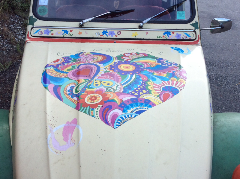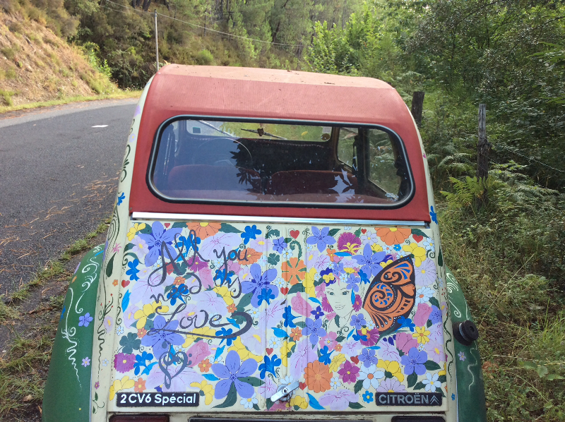 et il y a encore de la place. En 2cv on a pas peur de s'afficher et c'est très cool. Chemises à fleurs et pattes d'eph, une belle époque !!!
