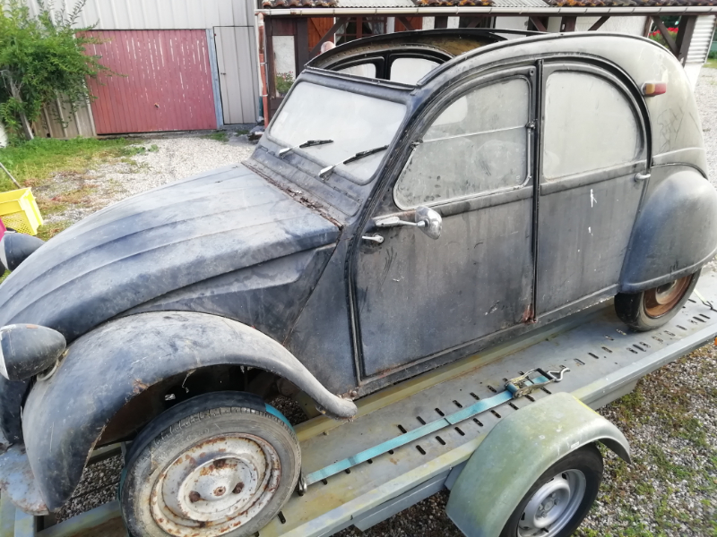 En effet, ma grand mere possède dans son garage une 2cv dont tout le monde a oublié son existence......bref, à un repas de famille, ça c’est fini sur un « si tu la veux, n’hesites pas, ça fera de la place »...donc, après analyse du véhicule, je me tente.
