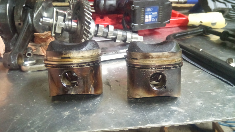 En ouvrant j'ai constaté un énorme dépôt de calamine sur les pistons ainsi que sur la culasse.