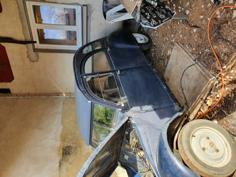 Je m'appelle Valentin, j'ai 26 ans et je viens tout juste d'acquérir une 2CV 6 de 1985. Je suis un fan des deux pattes depuis que je suis tout petit, mais je dois dire que je suis avant tout un amoureux des voitures anciennes. Il y avait longtemps que je rêvais d'acheter une 2cv et c'est aujourd'hui chose faite ! Je vis vraiment un rêve de gosse ! Bon il y a du boulot avant que je puisse me balader avec cette merveille car elle est à restaurer. J'ai très peu voir pas du tout d'expérience en matière de restauration mais cela ne me fait pas peur et après tout je ne suis pas pressé. J'espère pouvoir bénéficier de vos conseils si jamais je suis perdu... vous trouverez ci-dessous des photos de mon nouveau passe temps. N'ayez pas peur elle a malheureusement subit quelques transformations...