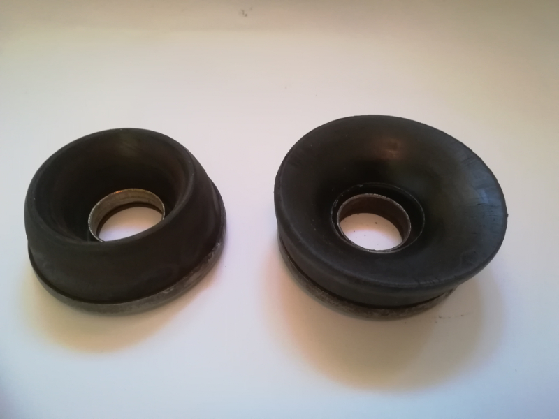 Lors du démontage des pots de suspension de ma 2CV6 de 1984, j'ai trouvé une butée (à l'avant droit) différente des autres. Quelqu'un a t'il connaissance qu'il y ait eu des montages différents ?