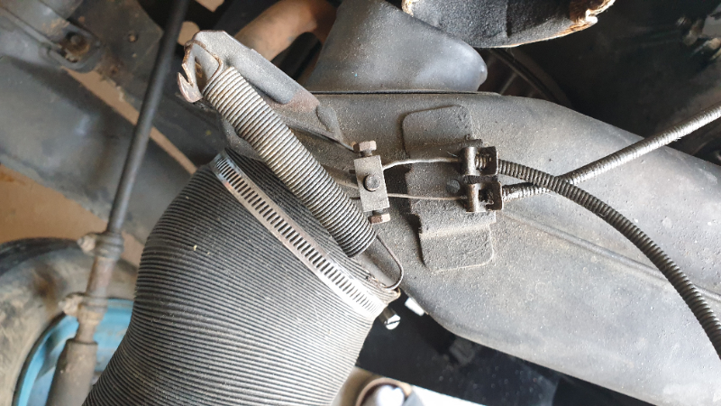 Le ressort visible sur la photo ci-dessus n'est pas un ressort prévu pour le système de chauffage mais pour le carburateur. Il est trop long, et si tu regardes bien la photo, il n'est maintenu à aucune des extrémités. Les ressorts pour le chauffage sont ceux-ci: