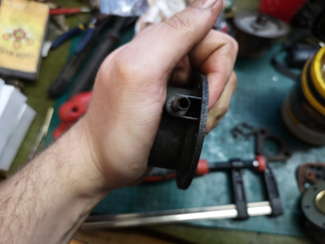 On a donc ce machin, tout fraîchement sorti du moteur Avant le démontage, je fais tout tremper dans l'essence pour décoller la crasse, puis tout est nettoyé au pinceau et à l'air comprimé.