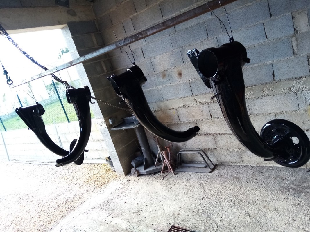 voici la suite donc apprêt antirouille + peinture noire satiné . maintenant sa rouillera plus sa peut attendre le remontage .