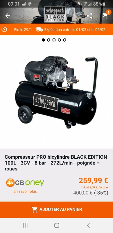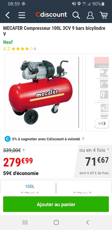 J'ai acheté en ligne un compresseur FIAC 100L Bicylindre Fonte 3cv, et j'ai reçu un Michelin 100L 2 cylindres fonte en ligne 3HP.