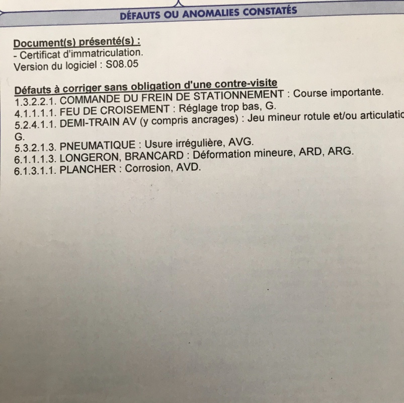 Le contrôle technique avait été passé en 2016 et je vous ai mis une photo du compte rendu. Il sera repassé avant la vente.