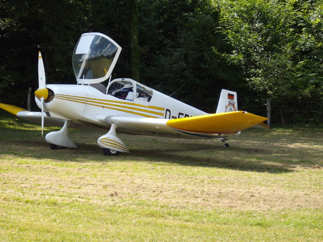 Un Jodel d112, train classique immatriculé chez les teutons, le plus dur c'est de les maintenir avec un certificat de navigabilité en ordre ces vieilleries mais quand cela vol quel plaisir.