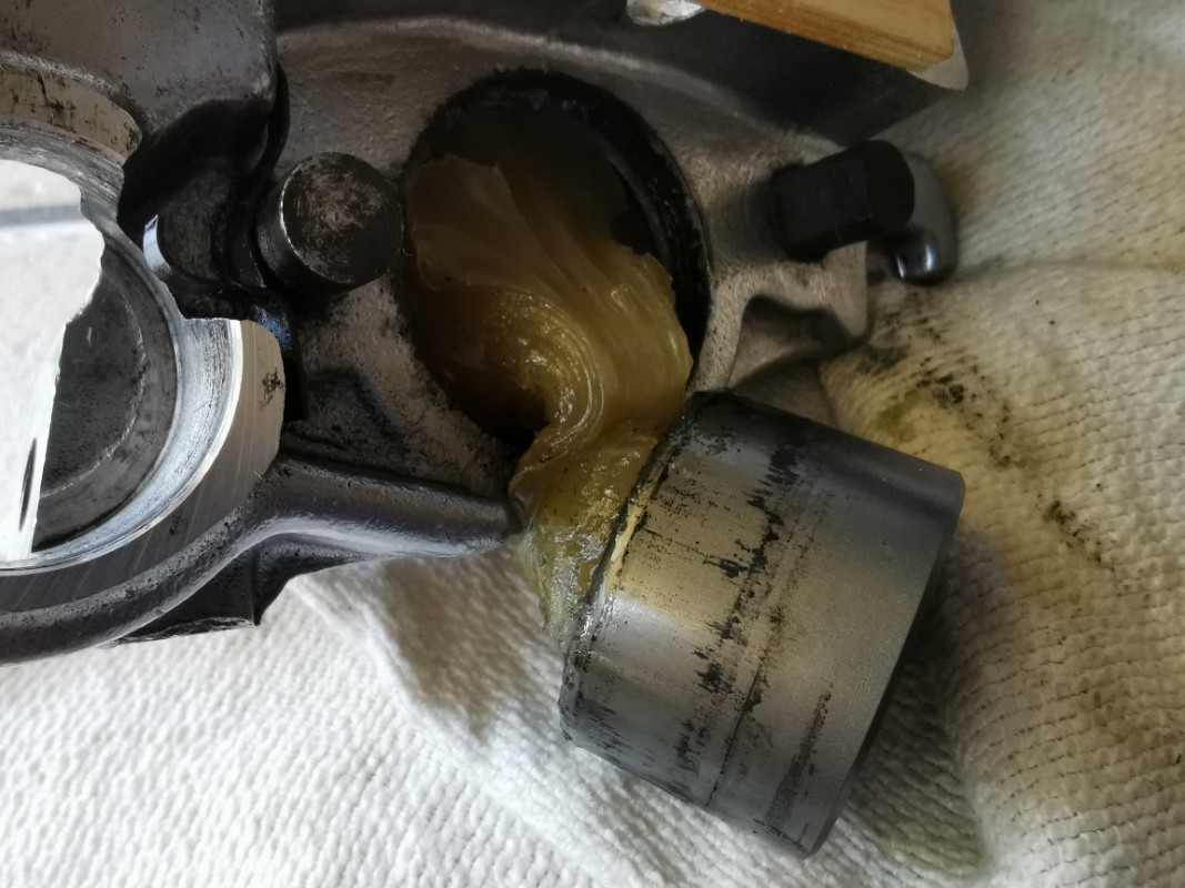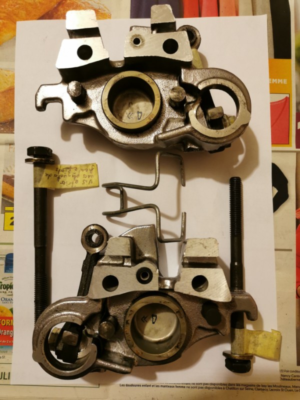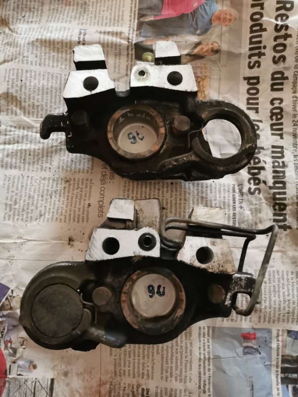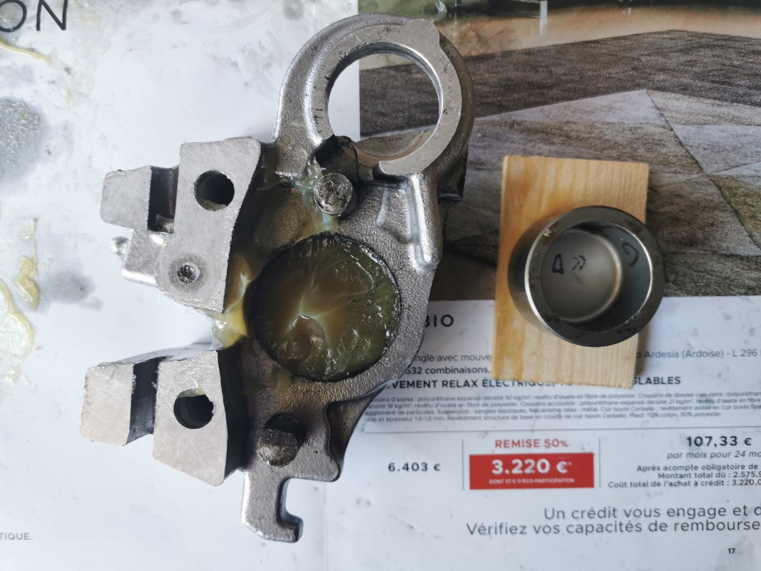 Après avoir bien mis de la graisse partout (la faute à une pompe à graisse récalcitrante ou à un utilisateur pas très habile, à vous de voir... :siffle: ), après un bon nombre de coup de pompe, le 1er piston est sorti tranquilou, un accouchement sans douleur, tout en douceur. Le deuxième à fait de même, en plus rapide.