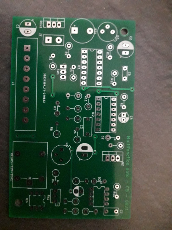 J'ai pu avancer sur le montage multifonctions dont je parlais, j'ai fait la conception avec le logiciel gratuit Kicad et j'ai fait tirer le circuit imprimé par un pro.