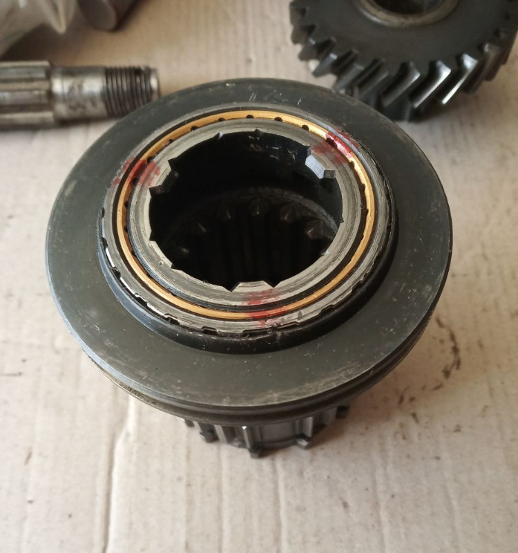 Voilà une vue encore plus précise pour savoir de quoi on parle... Je rectifie une erreur quand je t'ai dit que le grand pignon était celui de seconde, non c'est le pignon de la marche AR et oui, la collerette doit pouvoir rentrer dans le baladeur de 1ère/MA...il y a un sens à respecter pour le montage :