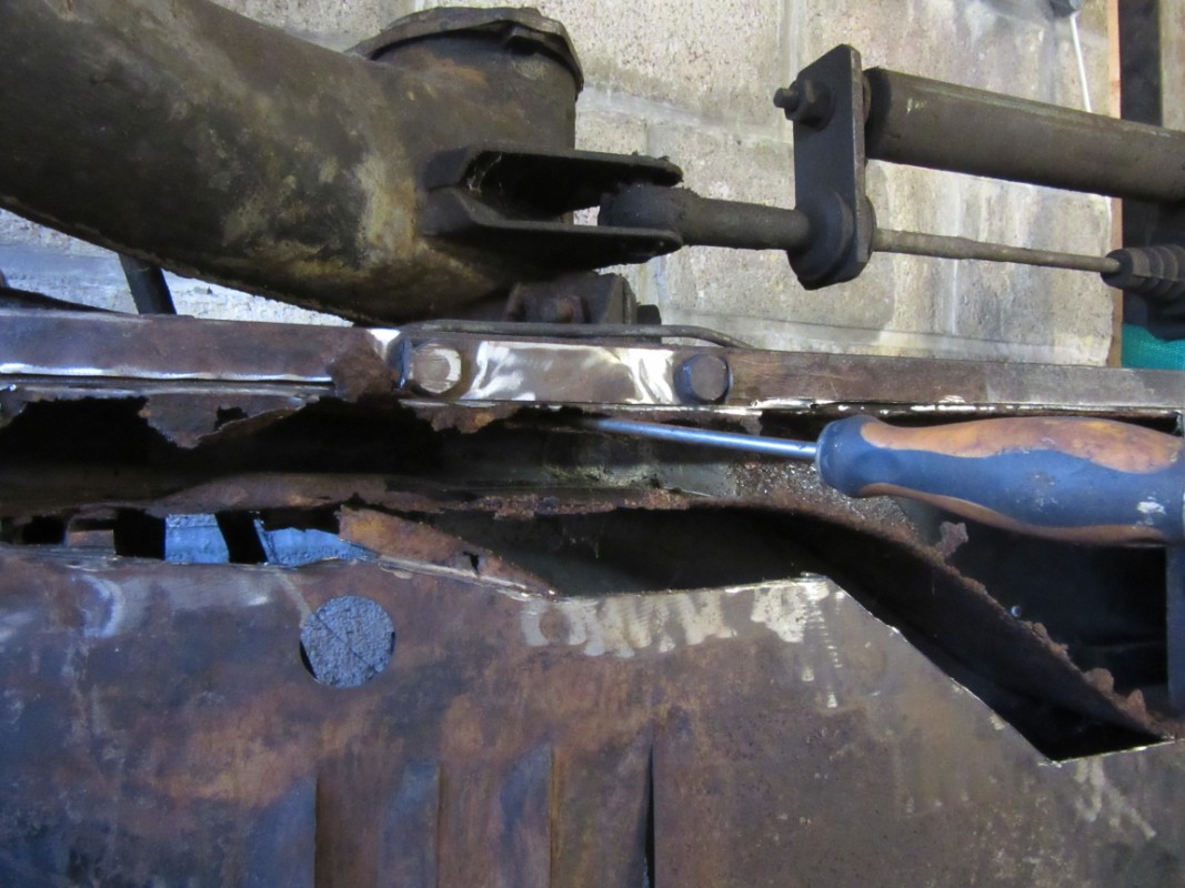 D'ailleurs, l'ancien proprio (ou quelqu'un d'autre) avait refait une platine de support du maître cylindre, pour camoufler l'attaque de la rouille sur le châssis .
