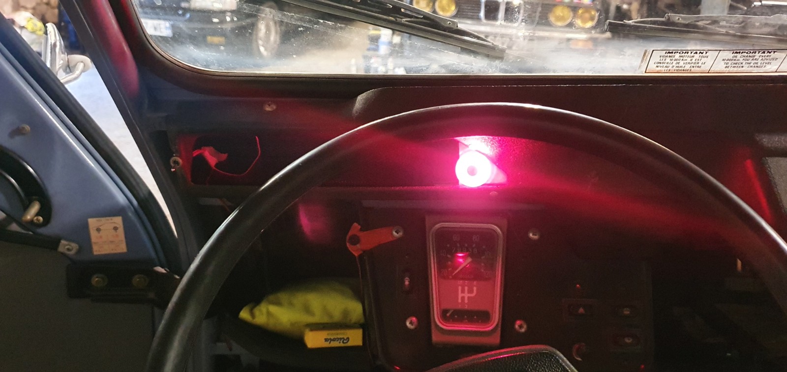 - virer toutes les aberrations installées par l'ancien proprio (3ieme feu stop sur le coffre....no comment...antenne radio collée sur le pare brise avant, hauts parleurs sur les portes avant, interrupteur déporté sur le haut du tableau de bord pour allumer le plafonnier, led pour indiquer que les phares sont allumés, voyant énorme sur le haut du tableau de bord pour indiquer que le clignotant fonctionne...et donc changer le haut du tableau de bord, celui qui est autour de la ventilation sous le pare brise puisqu'il est massacré avec ces boutons et voyants installés). Ah lala, les lubies des personnes d'un certain age....
