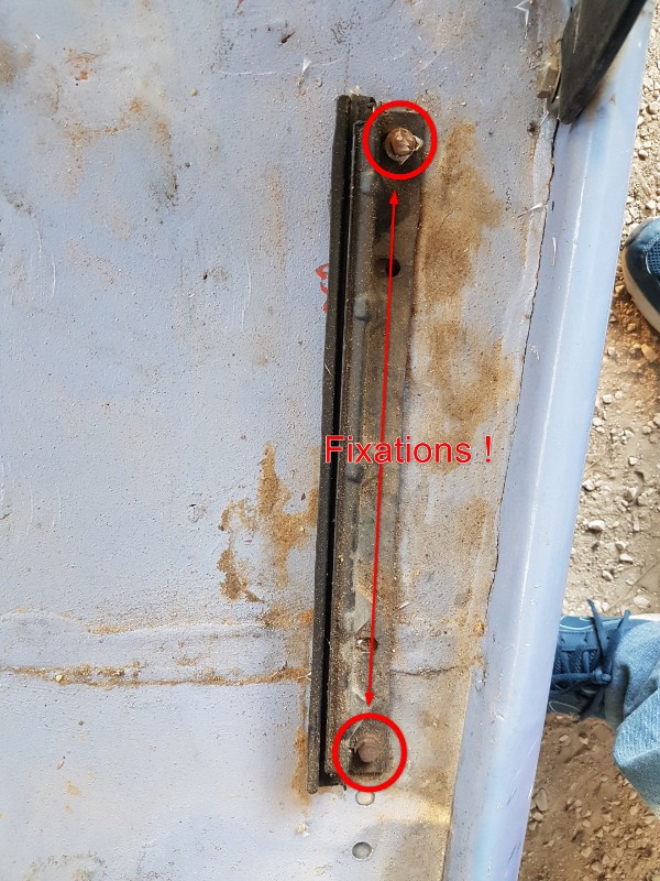 En attendant un peu de boulot sur le siège conducteur car j'ai du le sortir au maillet , il ne glisse pas dans son rail . En regardant de plus près.. son rail soude sur le châssis à été modifié, du coup la personne qui avait refait la 2cv de mon grand père a percé la caisse... écrou contre écrou.