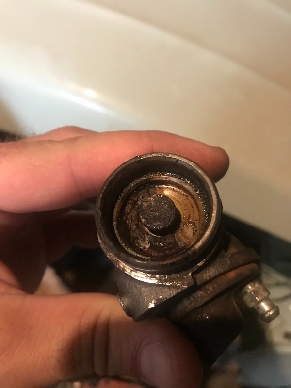L'écrou du tuyau de frein sur le cylindre était coincé et a donc foiré...