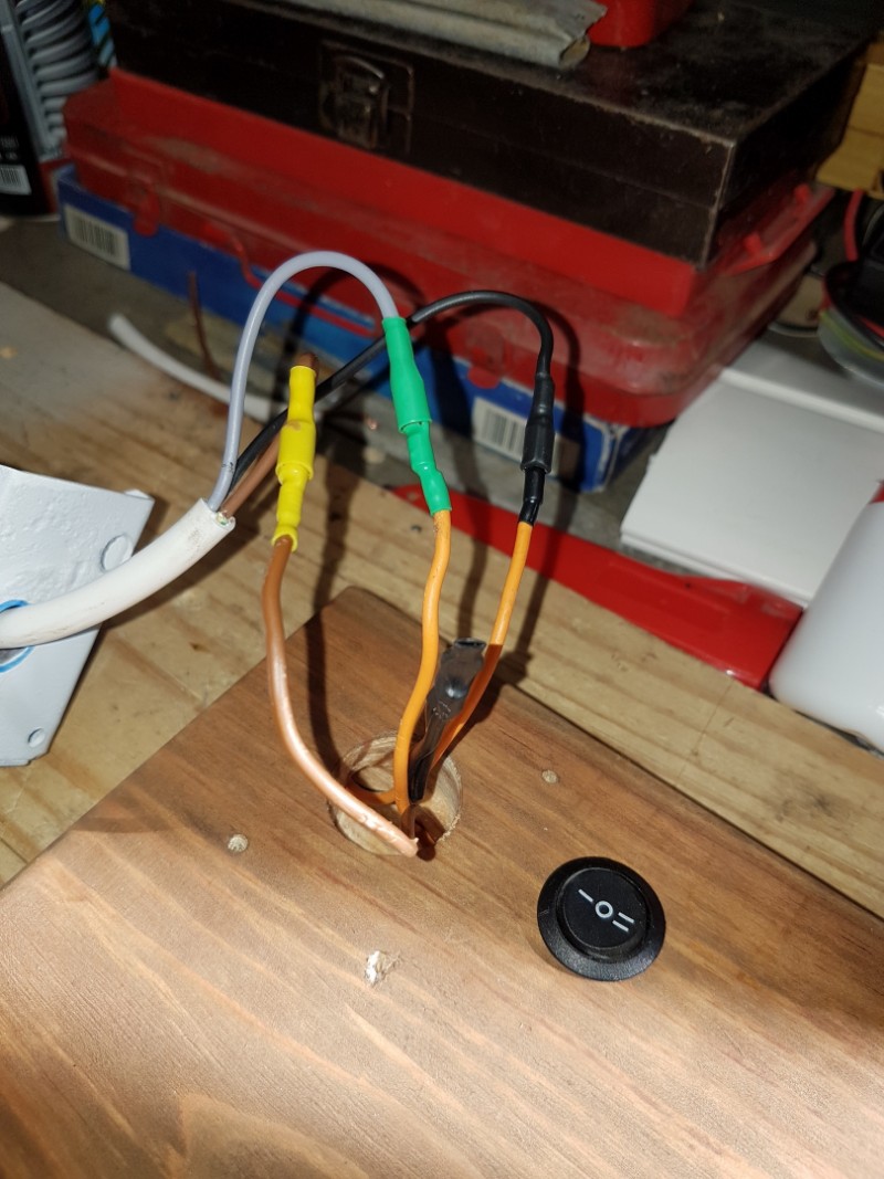 Il y a un inter 3 positions : O/N/O, car il y a 2 ampoules. J'ai repris une ampoule de feu de position/lanterne pour une lumière plus douce (au réveil c'est moins agressif ! :gnark: ) et une ampoule led 12v feu de croisement/code, pour la lecture du soir !