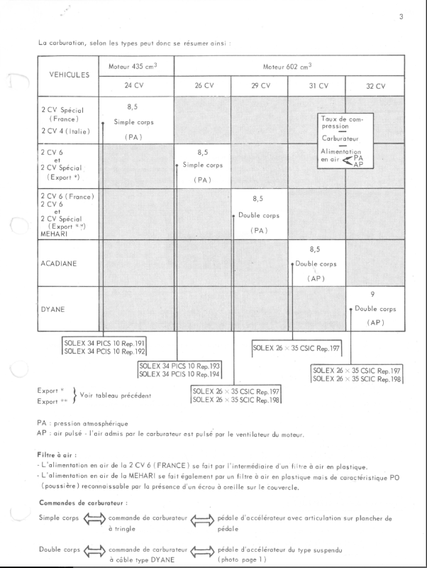 - Pour garder les pédales d'origine sans modification de la tringlerie je comprends qu'il faut mettre un carburateur 34 pics avec une pipe d'admission de 602 monocorps. En août 1978, pour l’année-modèle 79, les 2 CV 6 reçoivent désormais un carburateur à deux corps qui impose le montage d’une commande tirée, par câble, et non plus une commande poussée, par tringle. Bref, ça veut dire que pas de problème de compatibilité pour les moteur d'avant 78 et