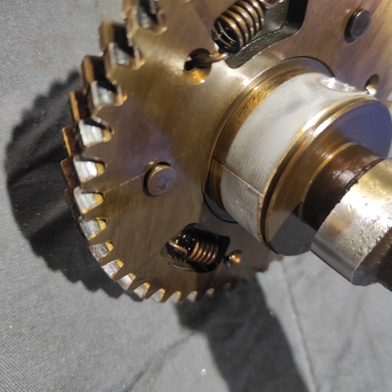 voilà mon problème, en démontant mon vieux moteur j'ai trouvé les dents du pignon d'arbre à cames décalé avec les rivets qui fixent les deux parties du pignon qui ont bougé. (Voir photos) Les dents du pignon du vilebrequin sont usés uniquement sur 50 % de la surface d'appui J'ai trouvé aussi de la corrosion sur les cames