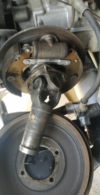 On a eu du mal à démonter l'écrou du moyeu (c'est une clé de 32 pour info), on a mis 1h avant de pouvoir le dévisser, ensuite on a pu enlever le cardan et le tambour de frein.