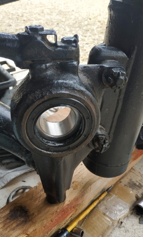 On a déposé les anciennes garnitures, les cylindres de roues, les demies cardans, les roulements, les joints spi, les roulements double rangées et les bagues filetée dans les moyeu.