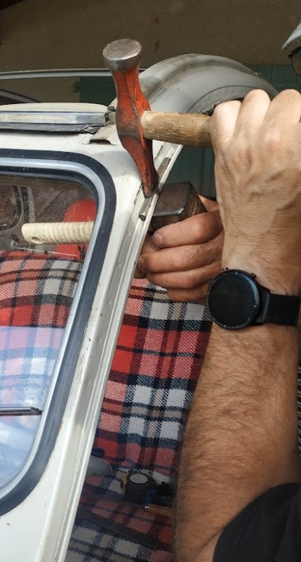 On a ensuite démonté le pare-brise, pas si facile à enlever le joint.