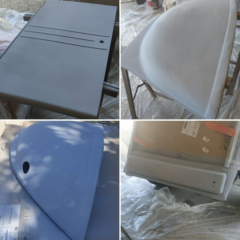 Ce matin, on a mis de l'apprêt sur les ailes arrières, la jupe arrière et la malle arrière.