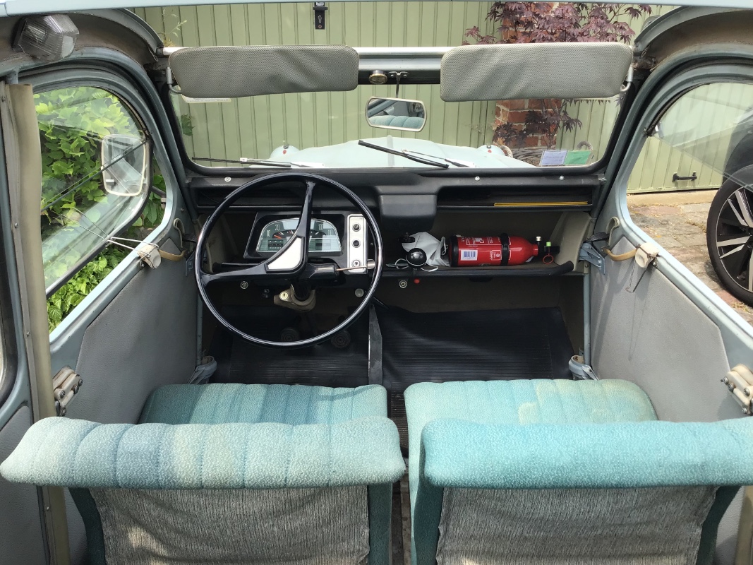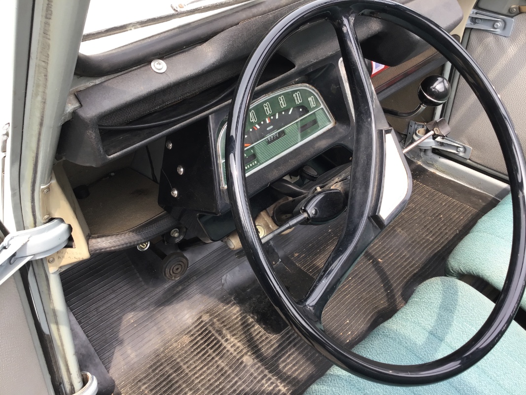 Voici ma dernière acquisition datant de l’été 2022 : c’est une 2 cv azam export de mai 67; la voiture est en bon état , mais il y a un peu de taf à faire dessus : freins, embrayage, un peu de cosmétique ( pour cet hiver) ! Les 4 pneus sont à changer car ils commencent à se fissurer. Intérieur avec tissus, contreportes d’origine . Vidange boîte moteur au programme ainsi que changement des amortisseurs arrières.