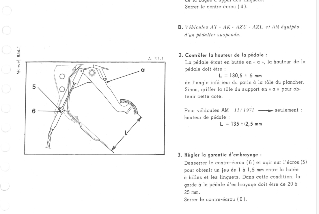 Voici la méthode de réglage de la garantie de débrayage (garde à la pédale).