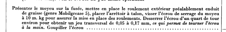 Alors, dans le cas de ces roulements à rouleaux coniques (les fameux TIMKEN) montés à l'articulation des bras, j'ai repris textuellement le manuel de réparation, car, comme tu le dis, ce sont les "Saintes Écritures"
