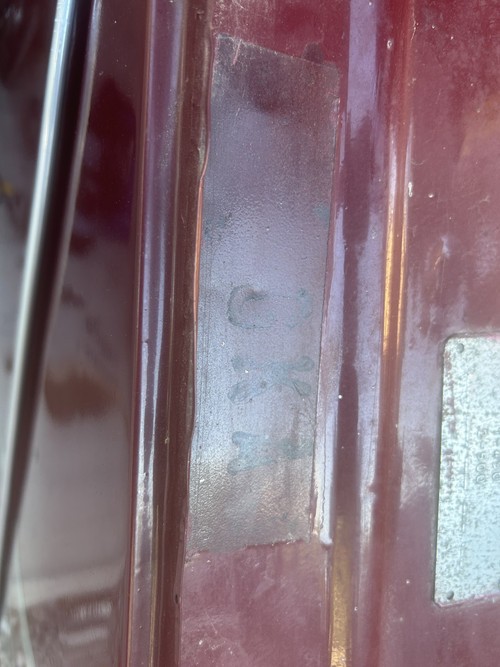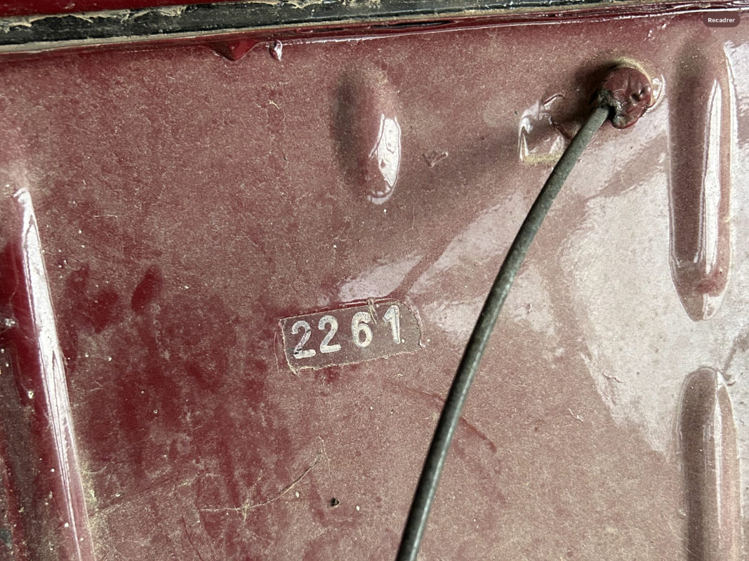 J’ai trouvé cette indication en démontant les joues et les ailes, on dirait que même si elle a été repeinte, la couleur d’origine est bien le rouge delage de la Charleston d’après les informations que j’ai pu trouver ici-même. C’est chouette de pouvoir retrouver l’histoire de la voiture , ils étaient prévoyants chez Citroen