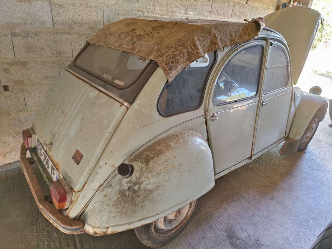 Après le départ de Michel, la 2CV a été remisée au garage, belle maman la roulait de temps en temps, mais la voiture commençait à subir ces années de labeur, les démarrages difficiles, puis impossible, ont cloué au garage la voiture.