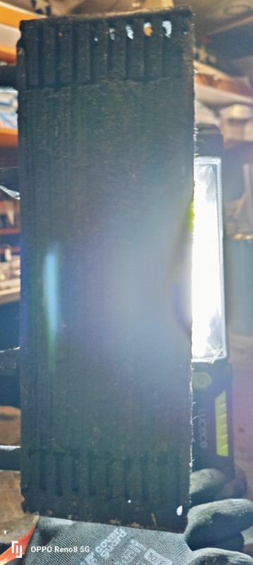 le radiateur d'huile, j'ai placé une lampe derrière pour visualiser plus facilement les passages d'air dans l'échangeur