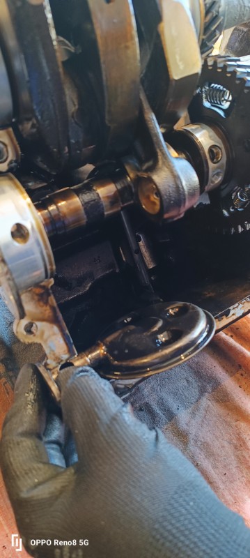 on enlèves les arbres et les poussoirs de tiges de culbuteurs, la tige de la pompe a essence.