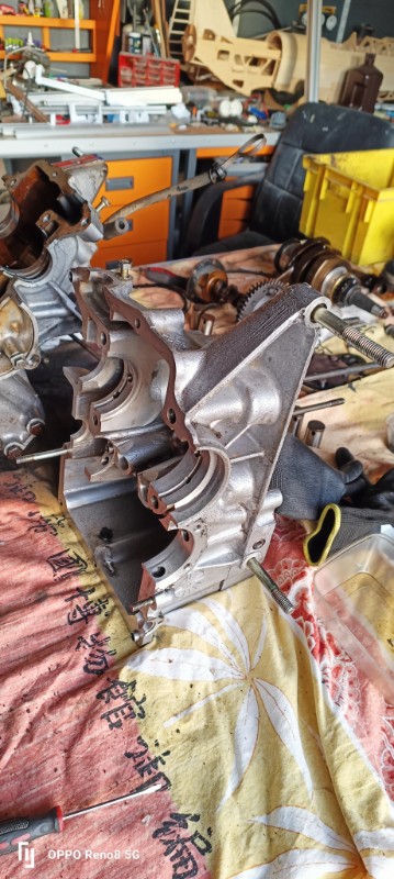 On finit par enlever les vis et écrous pour séparer les deux parties du blocs moteur, puis la aussi, quelques petits coups de maillet pour décoller les blocs et le tour est joué.