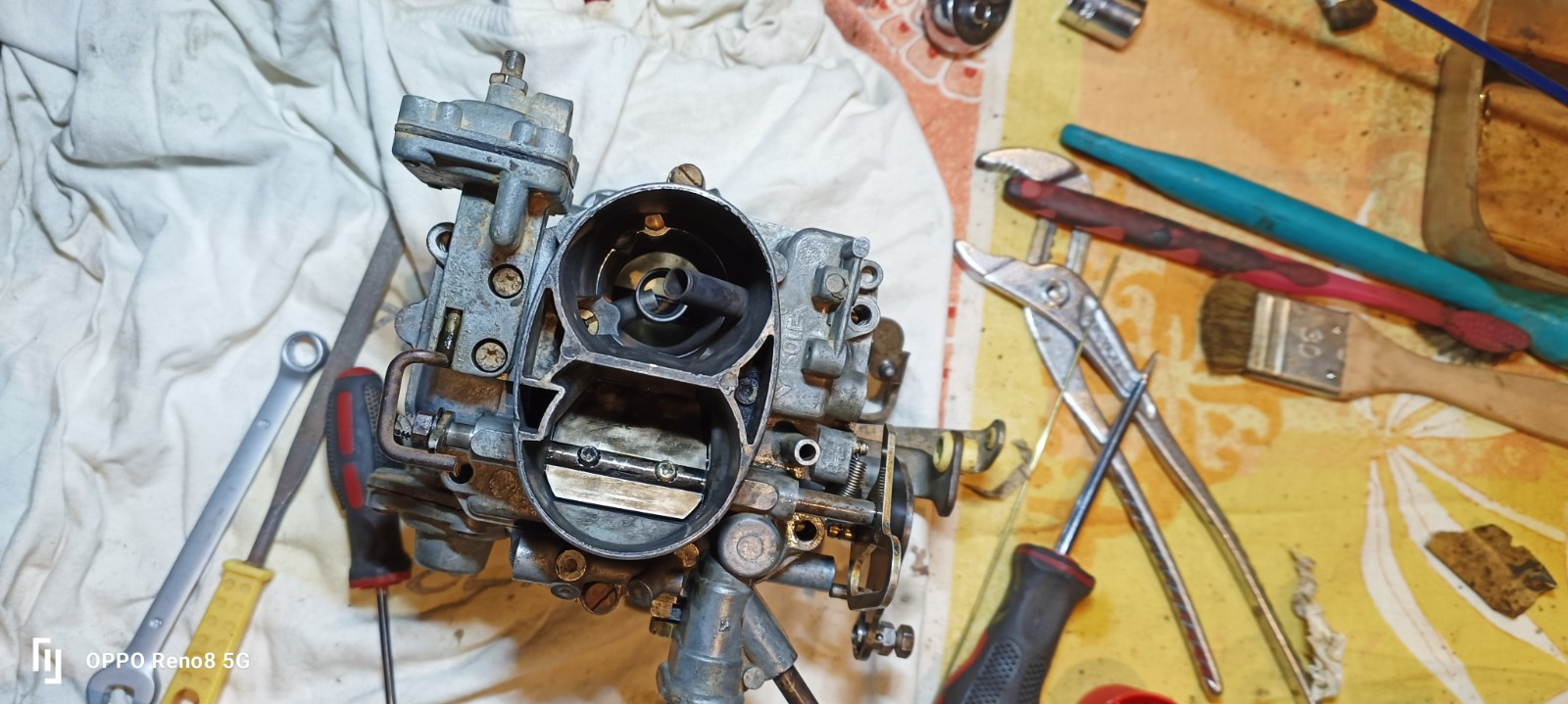 En attendant, on va s'occuper du carburateur. je vais partager avec vous une petite anecdote, ma fille en voyant le carburateur, me dit :" ça me rassure que tu sois avec moi, ça m'a l'air vraiment compliqué" je lui est répondu : " Rassure toi ce sera la première fois que j'ouvre un carburateur" elle me répond :" moi qui comptais sur toi pour m'apprendre !".
