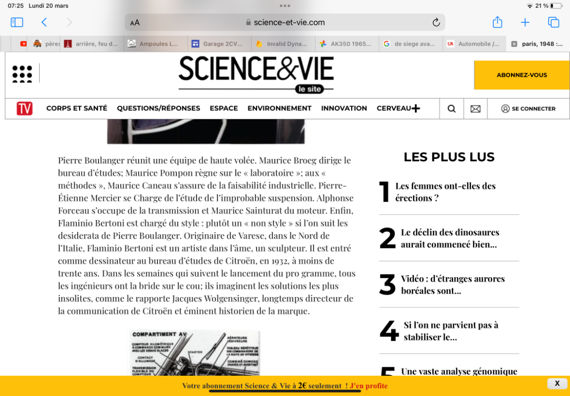 Je comptais sur vous ,je vais me renseigner dans la famille. Je sais qu’il faisait des essais de toutes sortes qu’il a participé à la préparation des croisières qu’il roulait en deuch qu’il était contre la sortie des premières ds id à cause des suspensions hydrauliques. Il est cité dans quelques bouquins. Je pense sincèrement qu’il est un père fondateur de la 2cv et aujourd’hui si je me consacre à la restauration d’une Ak 350 c’est en pensant à lui. Quand Citroën a fabriqué les dernières 2 cv au Portugal ma mère a eu la possibilité d’acheter un des 5 dernier numéro
