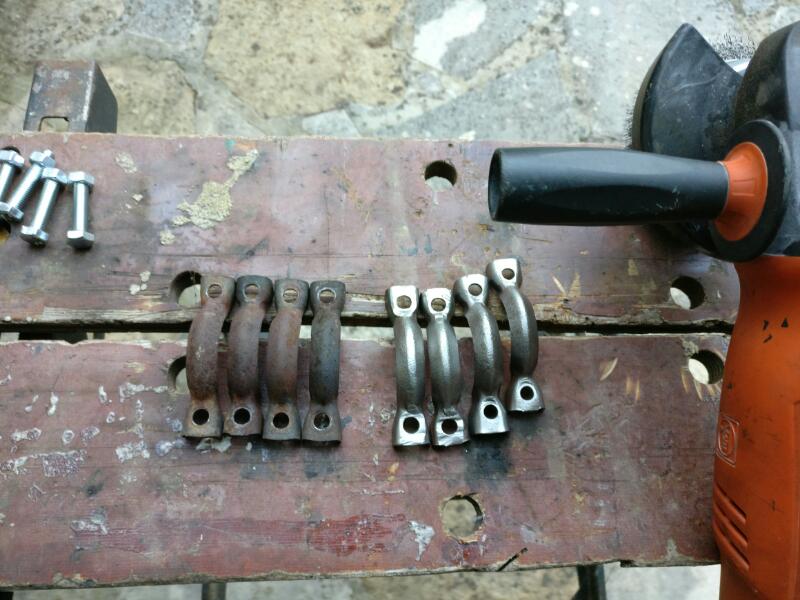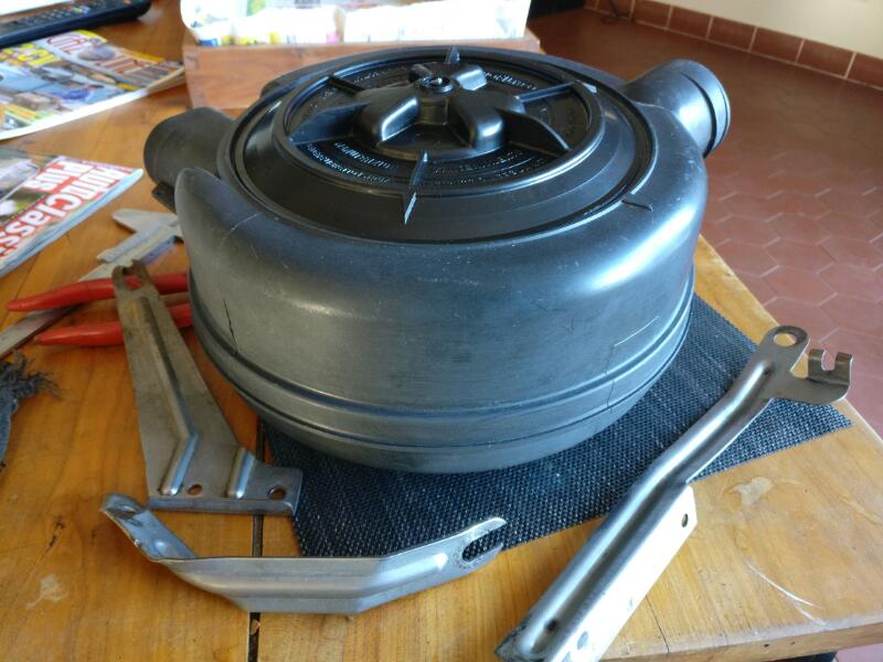 Aujourd'hui, nettoyage filtre à air, réservoirs. Passage des colliers échappements en vis de 8, plus standard, un coup de meuleuse et perceuse.